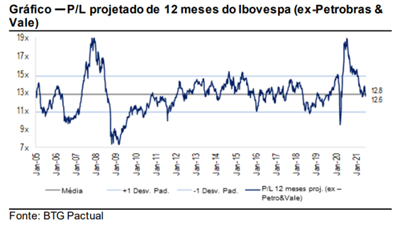 Contudo, mesmo com a recuperação do Ibovespa nos últimos quatro meses, os valuationscontinuam atraentes: o índice continua sendo negociado em linha com a sua média histórica.