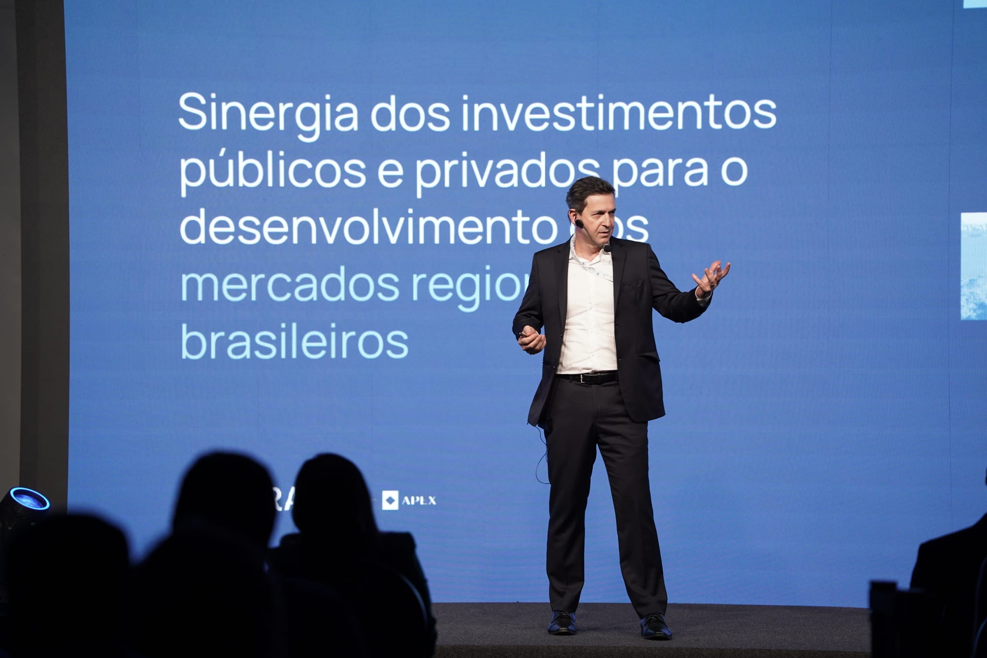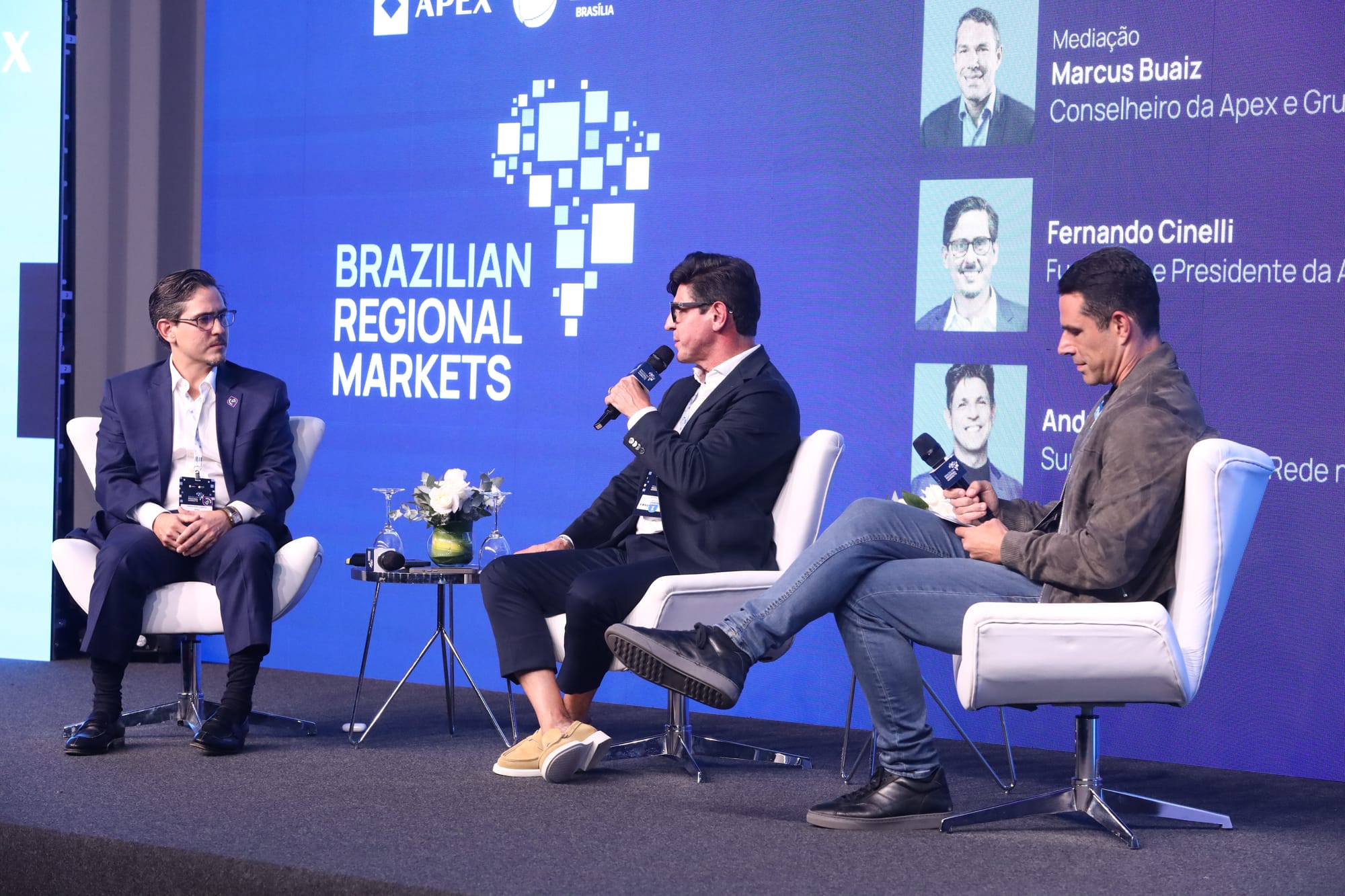 No painel, Fernando Cinelli, Fundador e Presidente da Apex, destacou o potencial dos mercados regionais brasileiros para investimentos e a importância de conectar stakeholders do setor público e privado. O objetivo é atrair investimentos e implementar políticas eficazes para transformar oportunidades em crescimento. Mediado por Marcus Buaiz, conselheiro da Apex e do Grupo Buaiz, o debate contou com André Dias, da Rede Record. Ele ressaltou o papel da comunicação para dar mais protagonismo aos mercados regionais no cenário nacional.