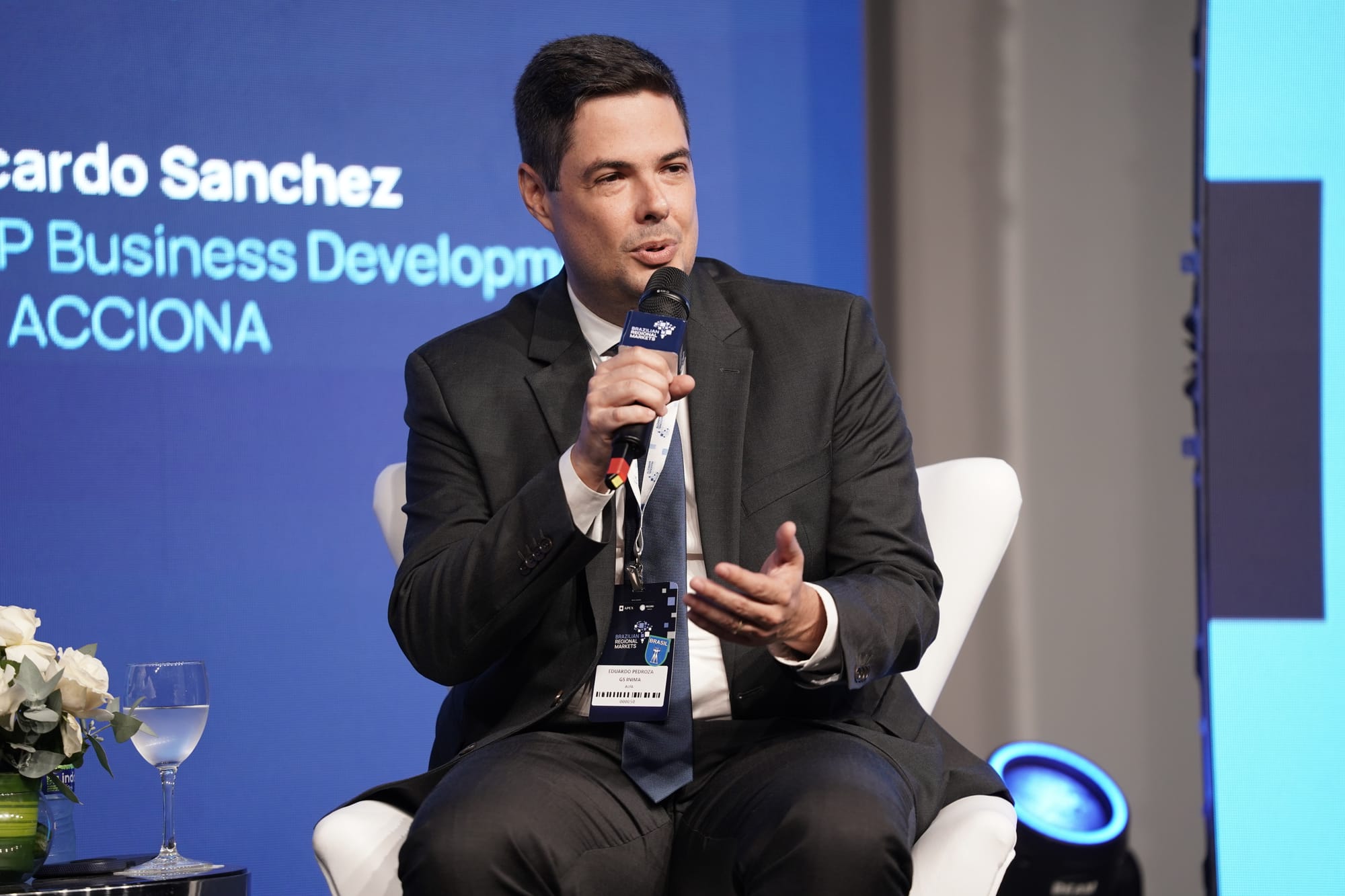 O painel destacou o impacto da integração entre investimentos públicos e privados no Brasil. Participaram do diálogo, Felipe Manara, Fundador e CEO da Stoic Capital, enquanto mediador e, como painelistas, Eduardo Pedroza, Diretor de Novos Negócios da GS Inima Industrial, Munir Abud, Diretor Presidente da Cesan, e Ricardo Sanchez, PPP Business Development da ACCIONA.