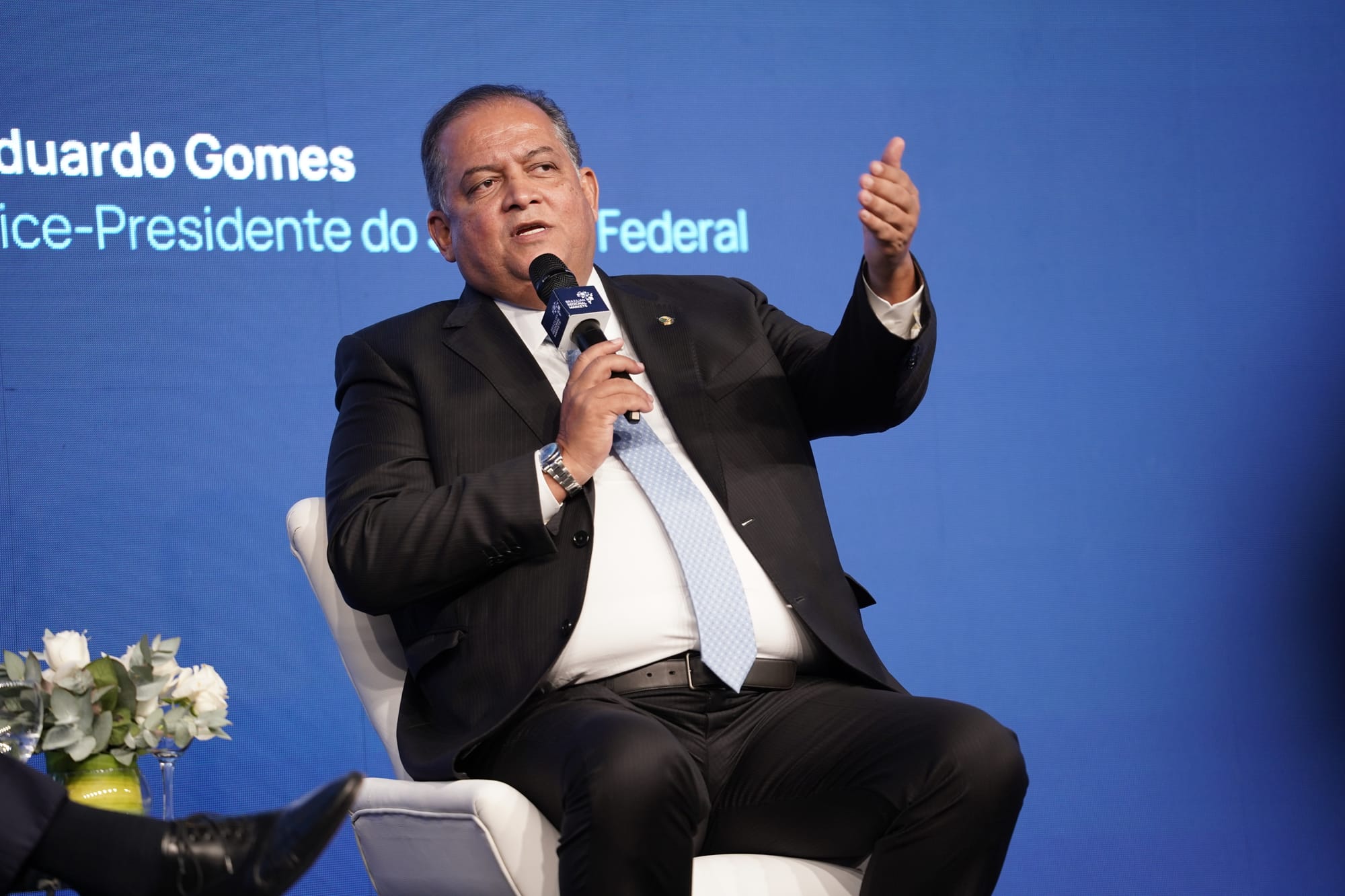 Durante o painel, o Vice-presidente do Senado, Eduardo Gomes, ao lado de Pedro Petris, Vice-presidente de Operações da Apex, abordou o cenário político e econômico do Brasil em 2025, destacando o novo ritmo de negociação entre o Legislativo e o Executivo. Regulamentação da reforma tributária, o fortalecimento da infraestrutura e a relação entre os poderes foram temas centrais da discussão.