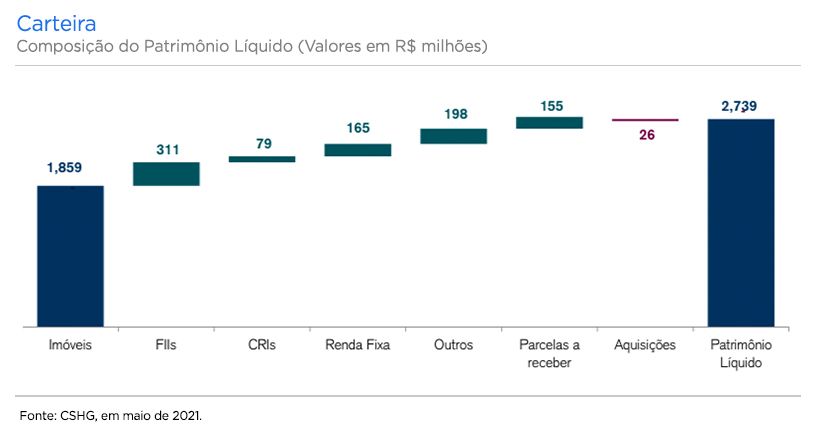 Já a composição do patrimônio líquido por classe de ativo é composta majoritariamente por imóveis. Assim, o patrimônio do fundo totaliza R$ 148,59 por cota.