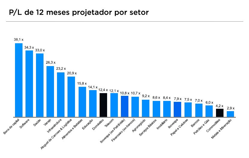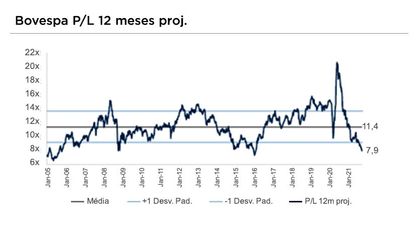 No momento de seleção dos ativos, tendo em vista as oportunidades descontadas em bons papéis na bolsa, vale ficar atento às disparidades entre setores. Isso porque algumas reações foram exageradas, não justificando tamanha queda. Assim, vale observar o P/L por setor, que apresenta uma disparidade relevante. Vale destacar, nesse contexto, o setor de bancos, que apesar da resiliência, principalmente em um cenário de alta dos juros, está extremamente descontado.