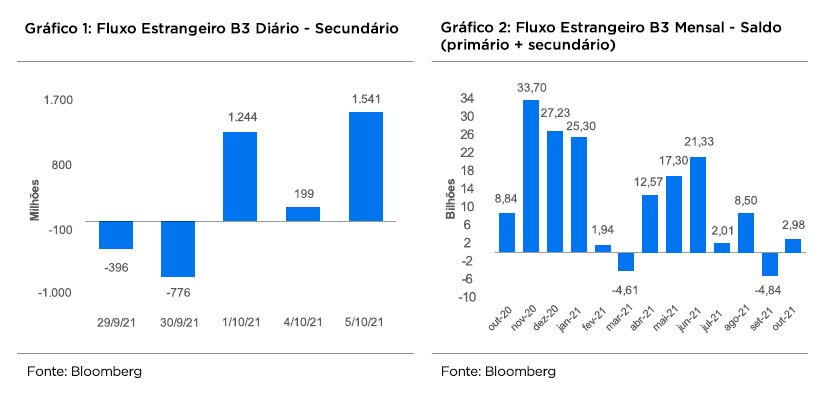 Em setembro, já pudemos ver as expectativas pelo tapering e uma antecipação da alta de juros para o proximo ano antes do que era esperado fazendo preço nos ativos americanos, com o S&P chegando a cair mais de 4% em determinado momento do mês, mas já ensaiando recuperação em outubro.